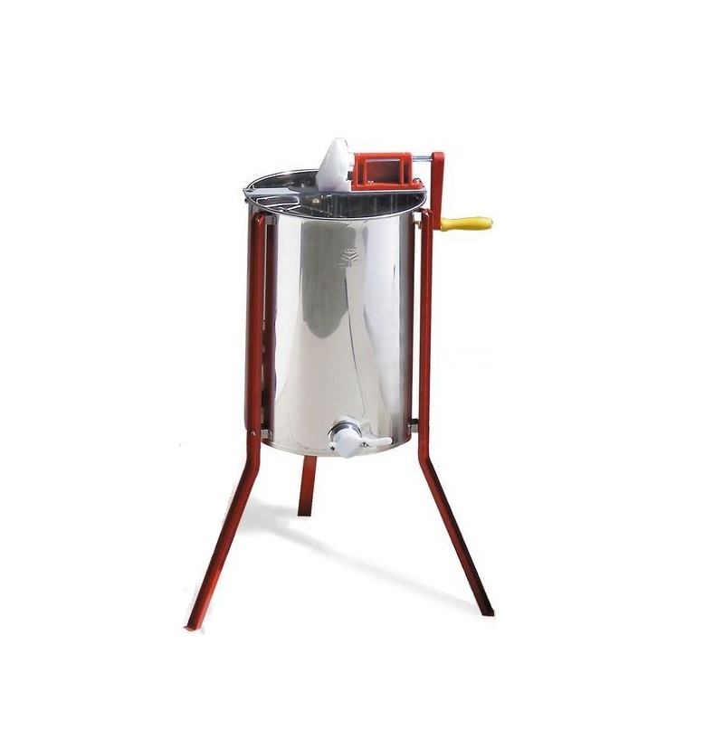 Smielatore tangenziale manuale per 4 favi da melario o 2 favi da nido, con gabbia in acciaio inox e trasmissione conica 380 mm
